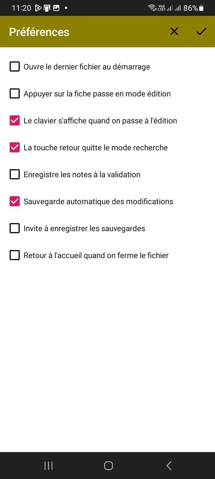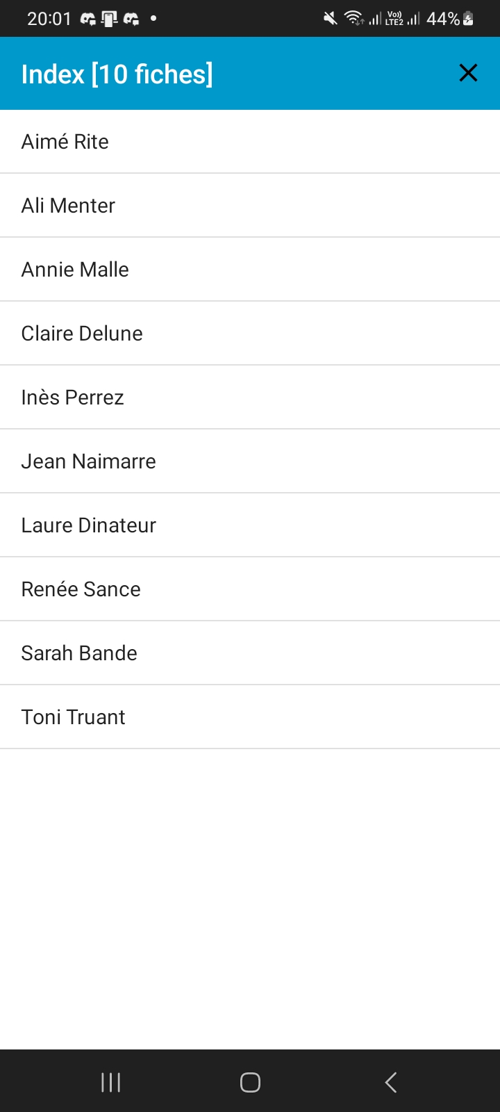Fonctionnalités : Consultation et ajout/suppression de fiches, recherche, liste des onglets, classement automatique des fiches (par ordre alphabétique ou de création), etc.