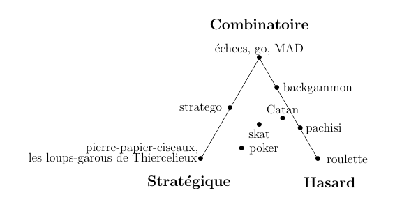 | Roulette | Echecs, Go, MAD | Pierre-papier-ciseaux | Poker | Backgammon | Pachisi | Stratego | Skat | Catan | |